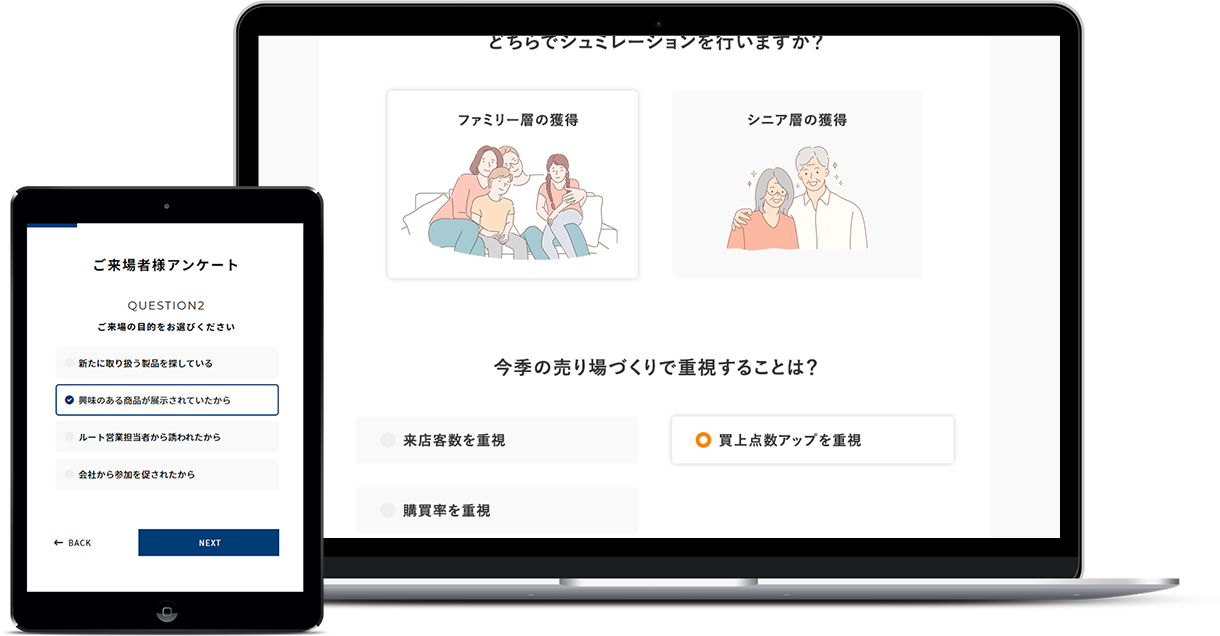 用途やニーズをヒアリングすることで、大口顧客には毎回飽きのこない新たな提案を、取引の少ない小口・休眠顧客には的確な提案営業が、Webで効率よく行うことが可能です。一度回答された情報はデータとして自動記録され、顧客台帳のデジタル化・管理業務の効率化両方の役割を果たし、営業担当は本来注力すべき顧客とのコミュニケーションに時間を割くことが可能となります。