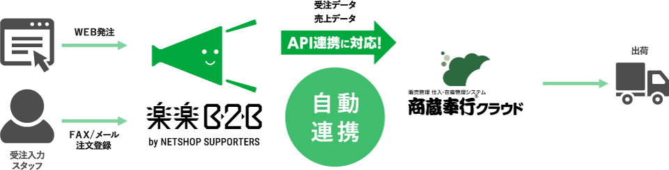 株式会社ネットショップ支援室(本社:東京都港区、代表取締役:山本皓一朗)の提供する、BtoB受発注をWEB化するクラウドサービス『楽楽B2B』と、株式会社オービックビジネスコンサルタント(本社:東京都新宿区、代表取締役社長:和田成史)が提供する、販売・仕入・在庫管理システム『商蔵奉行クラウド』がAPI連携したことをお知らせいたします。