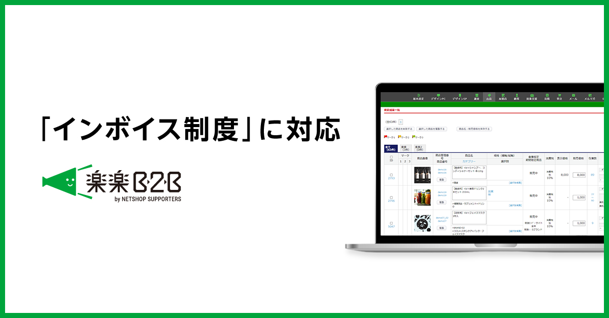 株式会社ネットショップ支援室は、提供するBtoB-ECカートシステム「楽楽B2B」において、2023年10月1日に開始する「インボイス制度」への対応をいたしました。