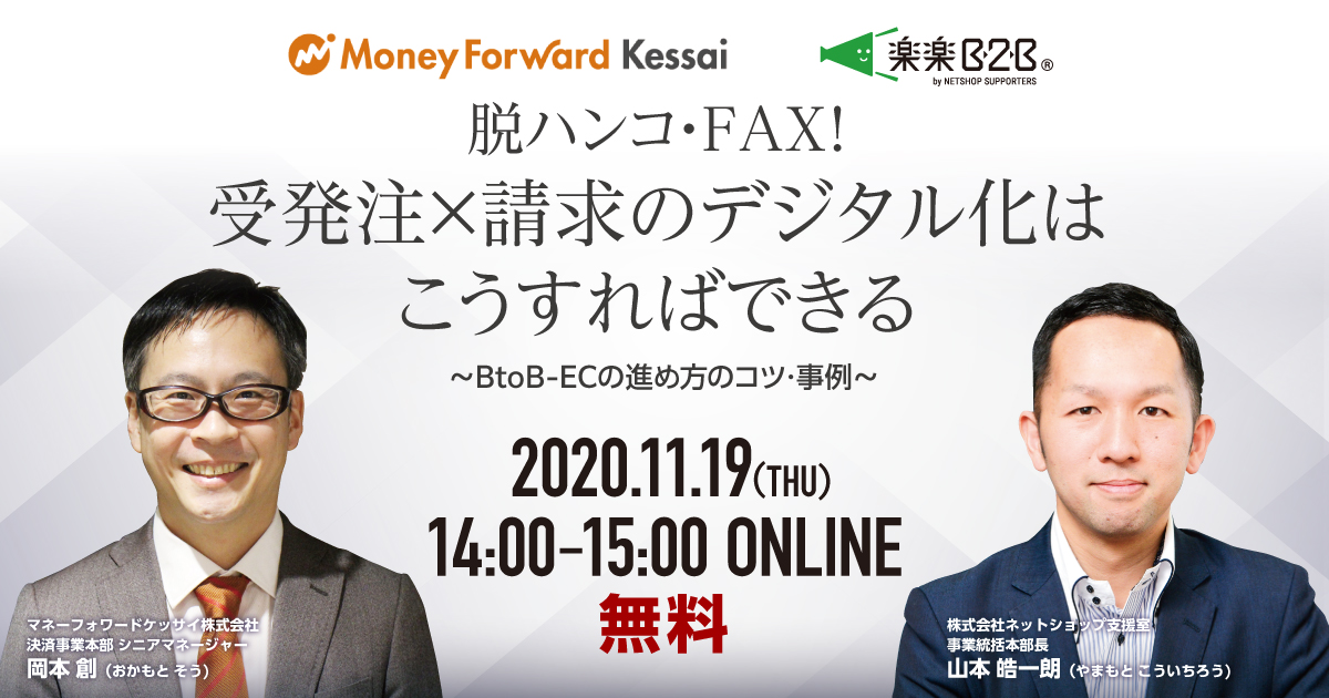 新型コロナウイルスの流行が追い風に加速する企業のデジタル・トランスフォーメーション(DX)。卸取引の受発注業務もデジタル化(BtoB EC化)する動きは、既に全国に広まりつつあります。本セミナーでは卸受発注業務のDXを進めるために、新型コロナの影響を受けて激変を続ける市場に在りながら、売り上げを伸ばしている企業が出現している「なぜ」に切り込み、BtoB EC化(受発注取引のWEB化)が持っている「売り上げ伸張の鍵」を探るクロストーク形式のオンラインセミナーです。