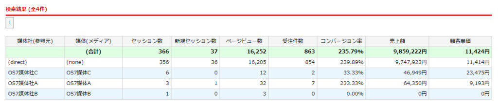 媒体/社名 広告分析管理>広告媒登録 で登録済みの媒体経由があれば表示されます