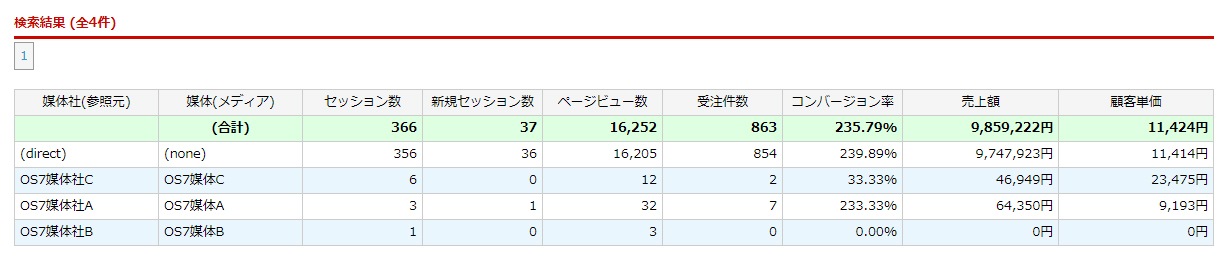 媒体/社名 広告分析管理>広告媒登録 で登録済みの媒体経由があれば表示されます