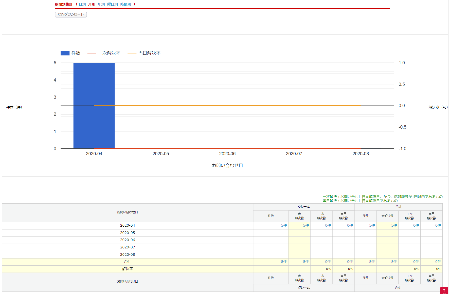 | 解決率 | 集計月の件数のうち、解決件数の割合 |