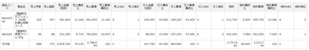 | 粗利累積構成比 | 対象期間での粗利累積に占める割合(%)※小数点第4位で四捨五入 |