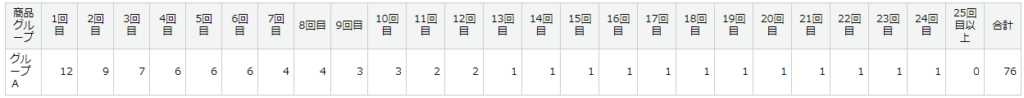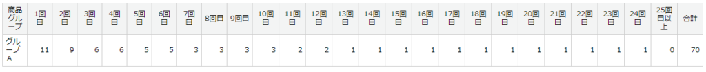 | リピート数(1~24回目、25回目以上) | 対象商品グループの売上件数 |