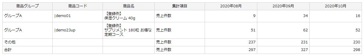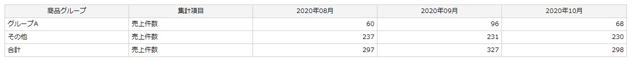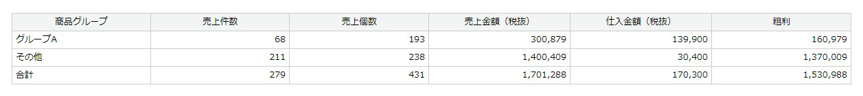 グループ指定した商品と、それ以外の商品という形で集計が表示されます。