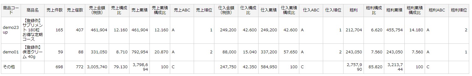 | 売上累積構成比 | 対象期間での売上累積に占める割合(%)※小数点第4位で四捨五入 |