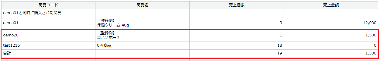 集計内容で選択した商品グループに属する商品と同時購入された商品のデータを集計します。