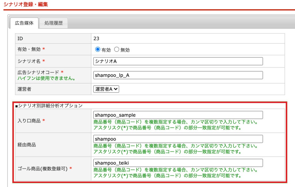 | 広告媒体コード | 広告媒体の識別コードを入力します。 ※半角英数字、_(アンダーバー)のみ入力可 |
