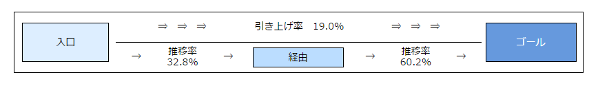 入り口商品、経由商品、ゴール商品を設定することで、推移率・引き上げ率が確認できます。