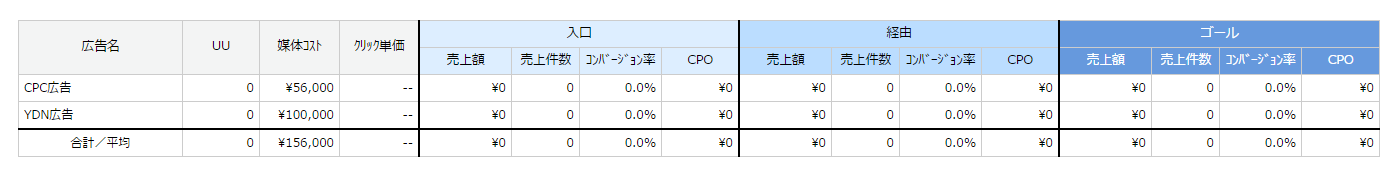 | 広告媒体種別 | WEBや新聞といった、媒体の種別を選択 |