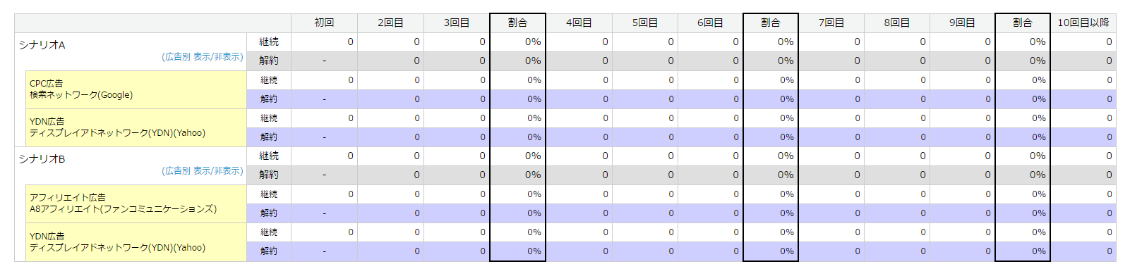 - 「初回購入のコンバージョン率はいいが、ほとんど継続しない」