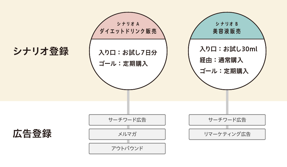 その場合シナリオを分けて登録することで、戦略ごとの効果検証が可能です。