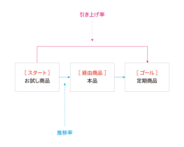 広告対象の商品は【入り口商品】【経由商品】【ゴール商品】の3つに分けられます。