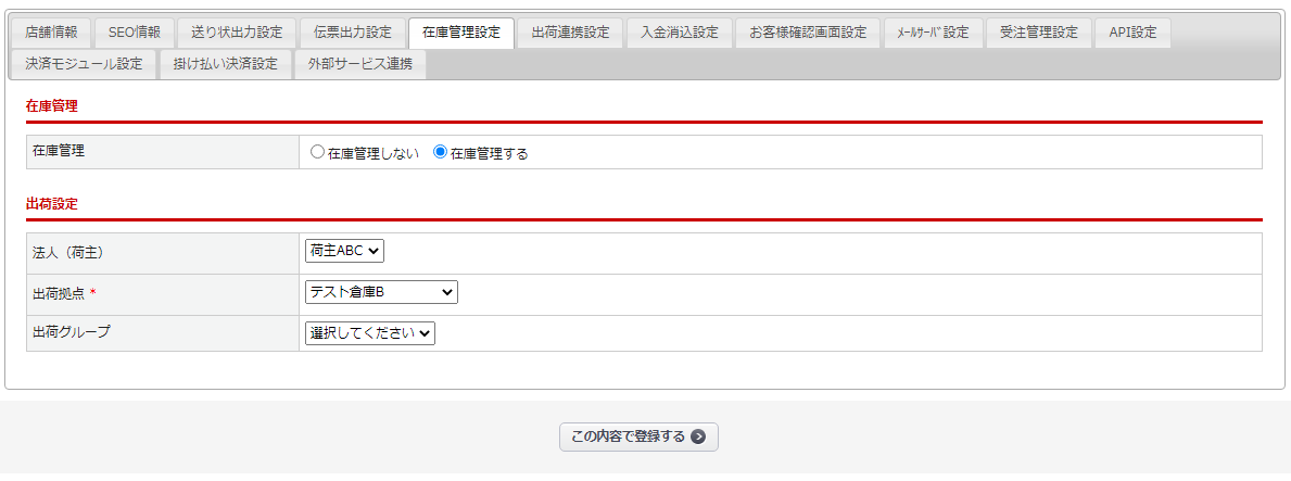 ※『在庫連動(SKU在庫管理)機能』をご利用の際にこちらの設定画面が表示されます。
