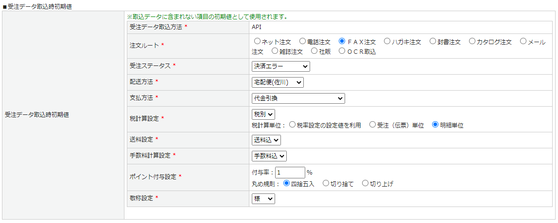 受注データ取込時初期値