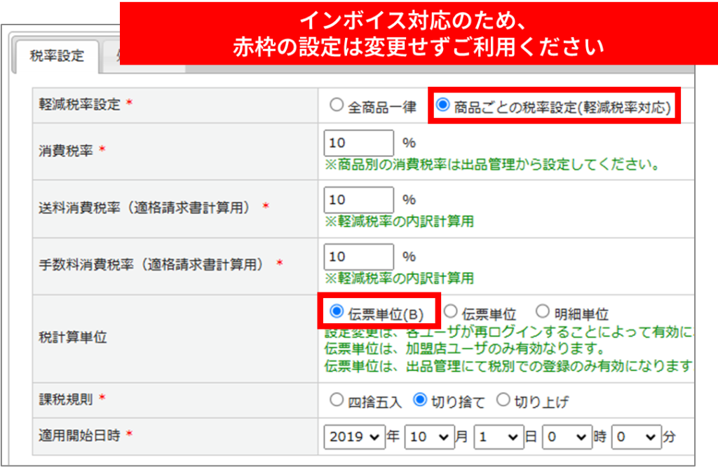 いずれの場合でも、「軽減税率設定」と「税計算単位」の設定にはご注意ください。