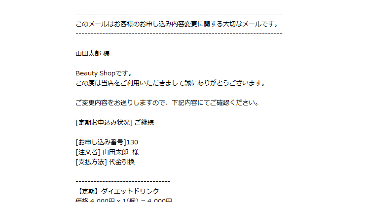 MYページから定期お申し込み内容が変更された際は、お客様と店舗にメールで通知されます。