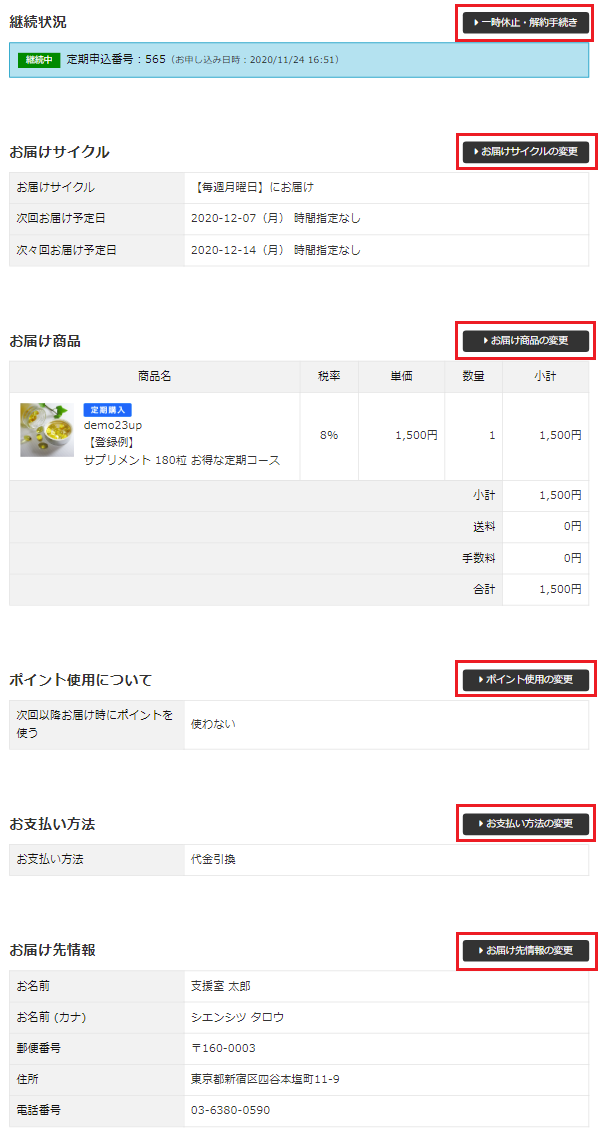 【MYページ>定期お申込み詳細画面例】
