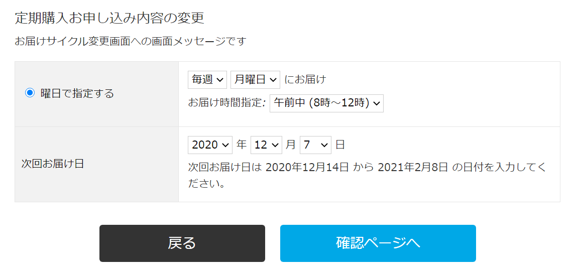 お届けサイクルの変更についての補足説明を入れたい