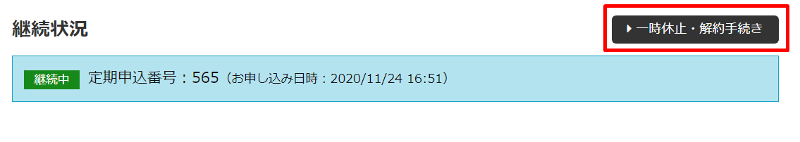※【一時休止・解約手続き】ボタンをクリックするとこの画面が開きます。