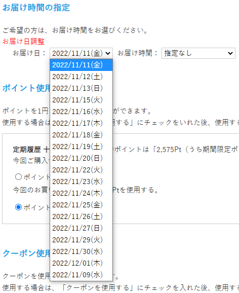 - お届け日プルダウン開始日=最短お届け日です。(※お届け日計算によって算出されます)