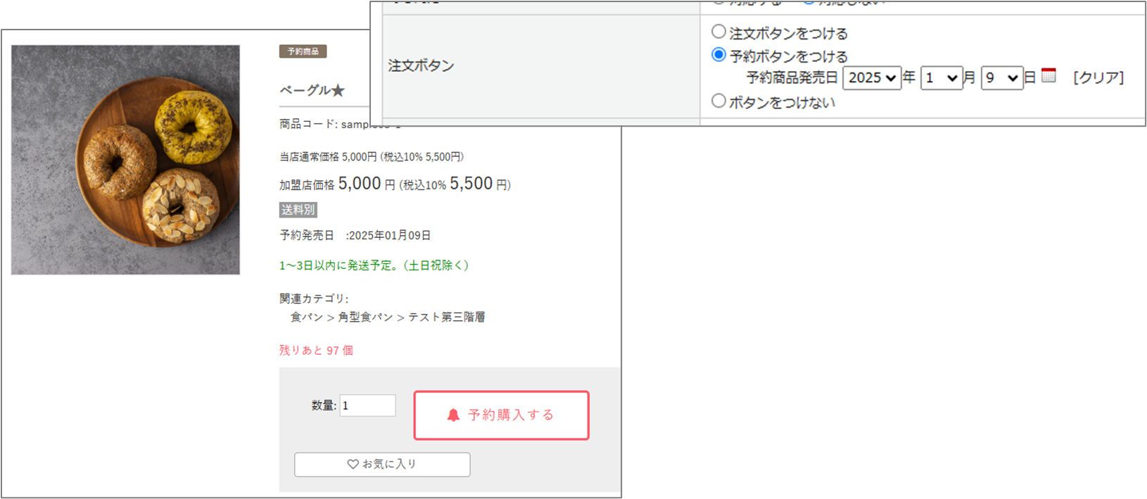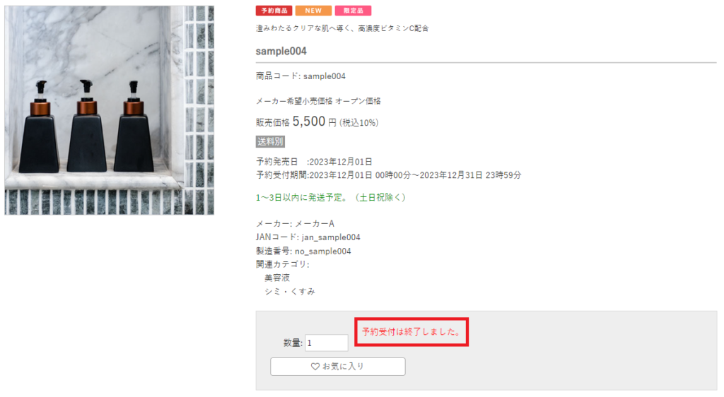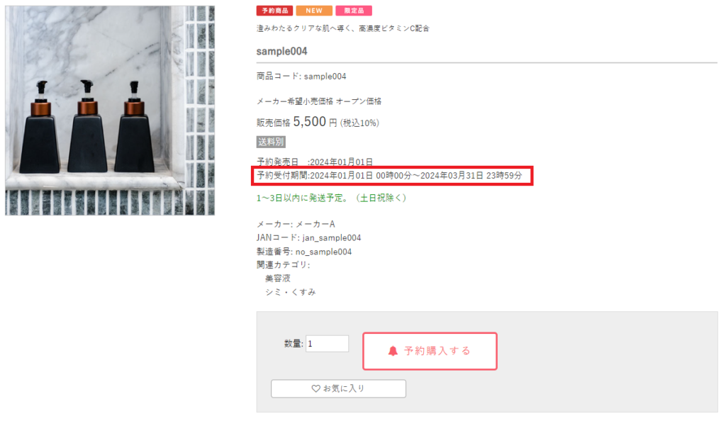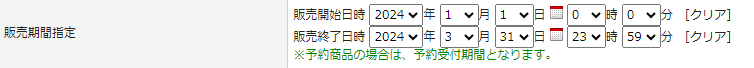 また、[予約商品発売日]を設定すると、予約発売日が表示されます。