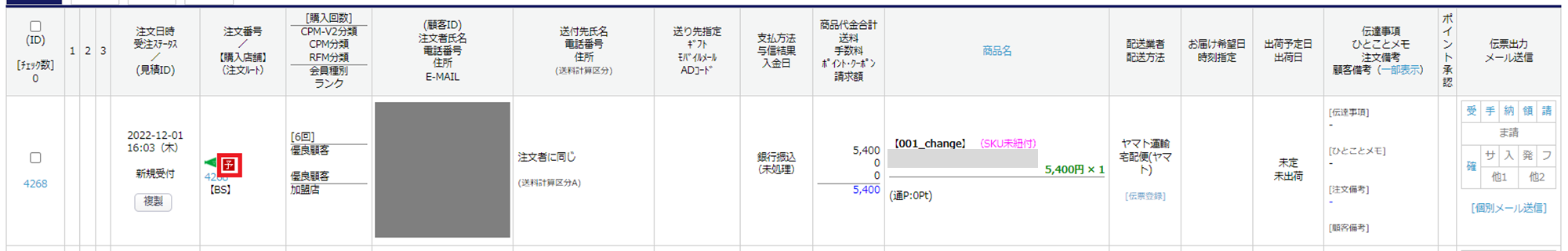 予約商品が注文されると、受注管理>受注一覧にて、各受注に予約マークが表示されます。