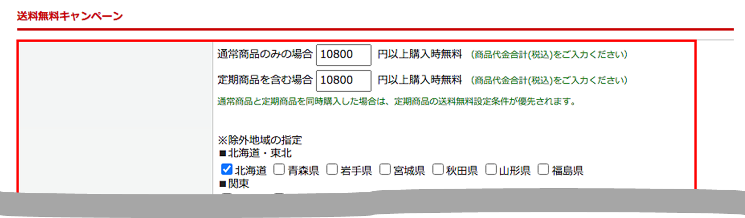 以下画像のように、【送料無料の対象外とする都道府県】にチェックを入れてください。
