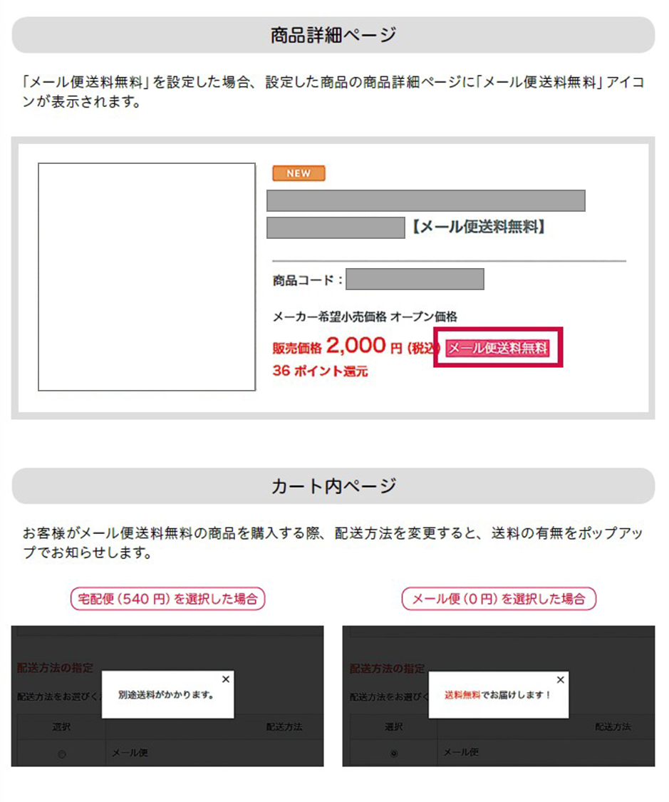 メール便は0円・宅配便だと540円といった、配送方法別の設定も可能です。