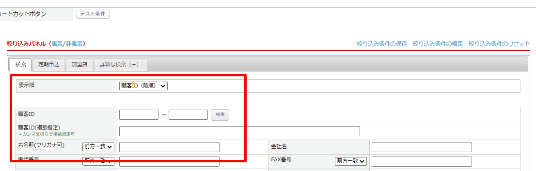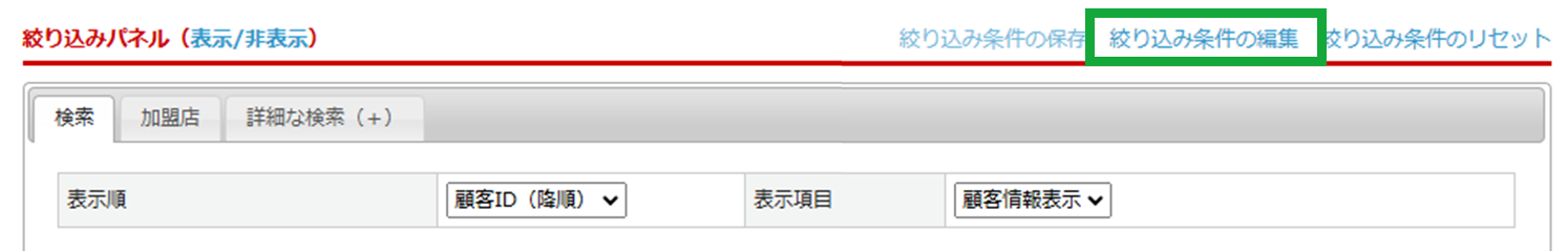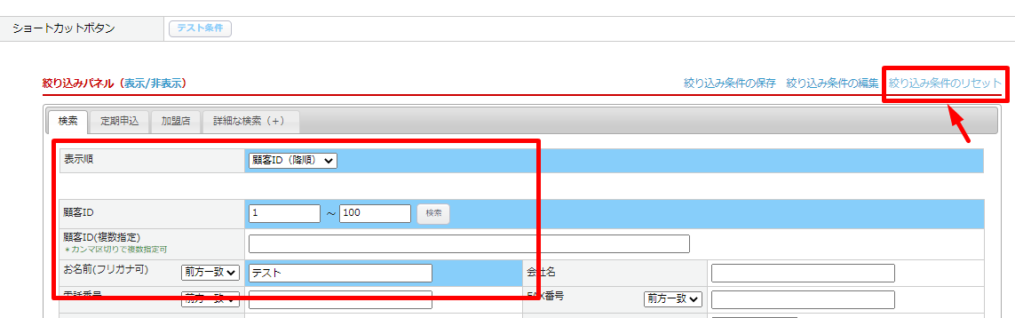 [絞り込み条件のリセット]をクリックすると、絞り込みパネルに設定されている条件をリセットします。