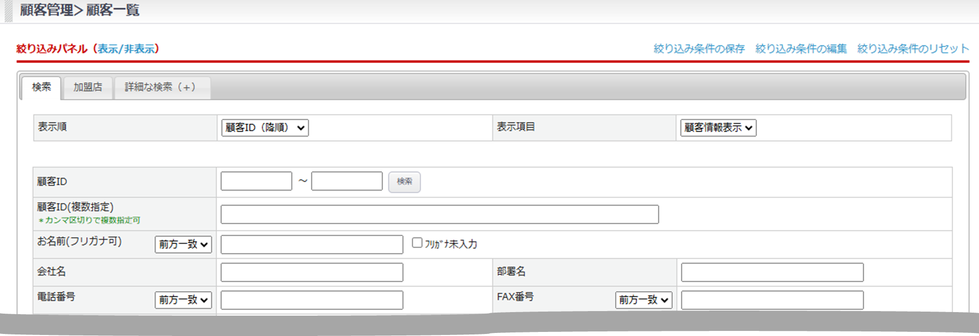 登録済みの顧客データを絞り込み条件で検索し、一覧で確認できます。