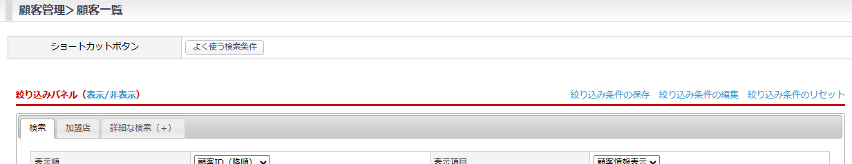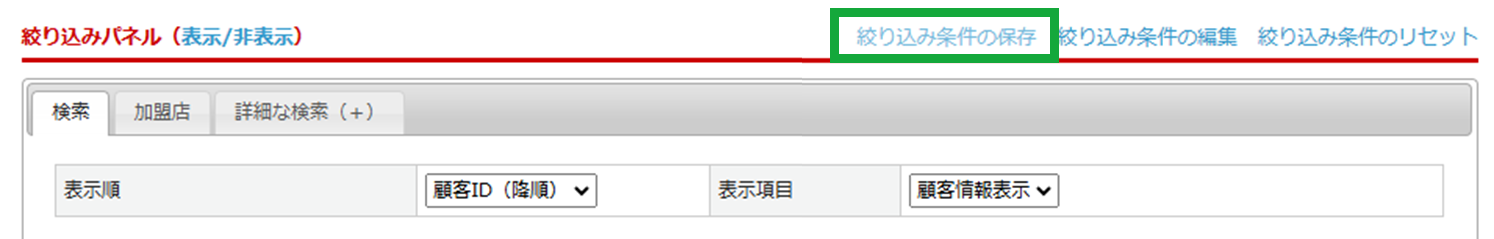 絞り込みパネルで設定した条件を保存し、ボタンクリックで呼び出せるようになります(=ショートカットボタンの作成)。