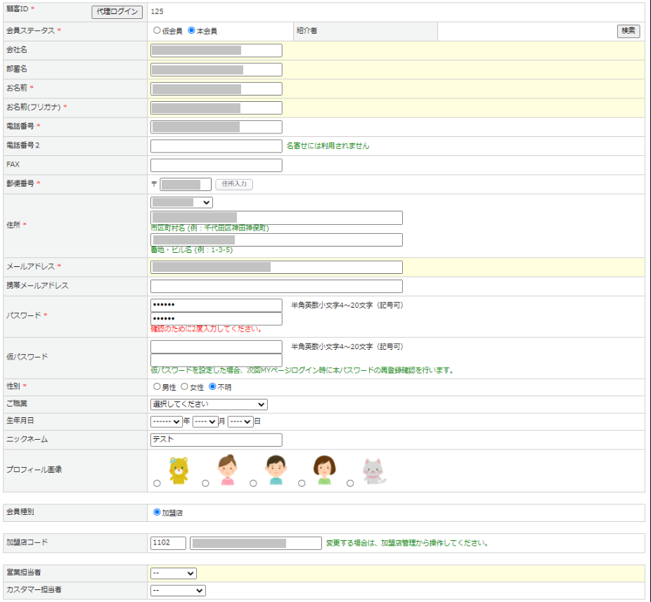 | プロフィール画像 | 会員のプロフィール画像を登録します。 |