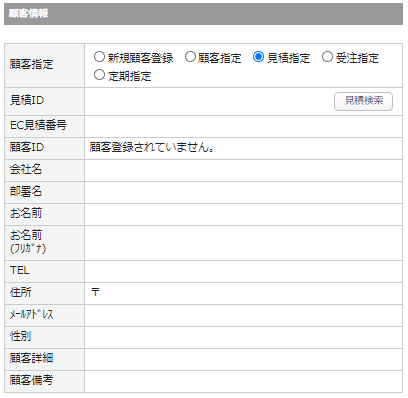 【見積検索】ボタンより見積検索画面にて、見積ID/見積番号から顧客を選択してください。