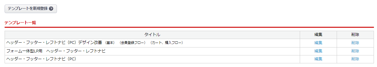 デザイン(PC) > ヘッダー・フッター・レフトナビ設定 デザイン(SP) > ヘッダー・フッター設定テンプレート一覧