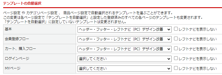※設定していない場合、各ページ設定で設定されたテンプレートが有効になります。