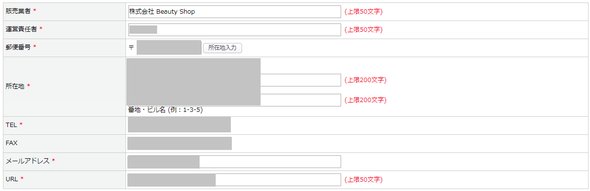 販売業者情報を入力する際は、以下の点にご注意ください。