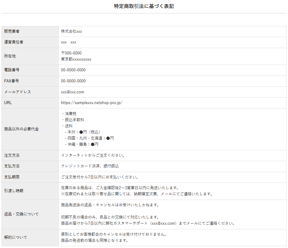 特定商取引法に基づく表記は、オンライン販売を行う場合サイトへの掲載が必須となります。
