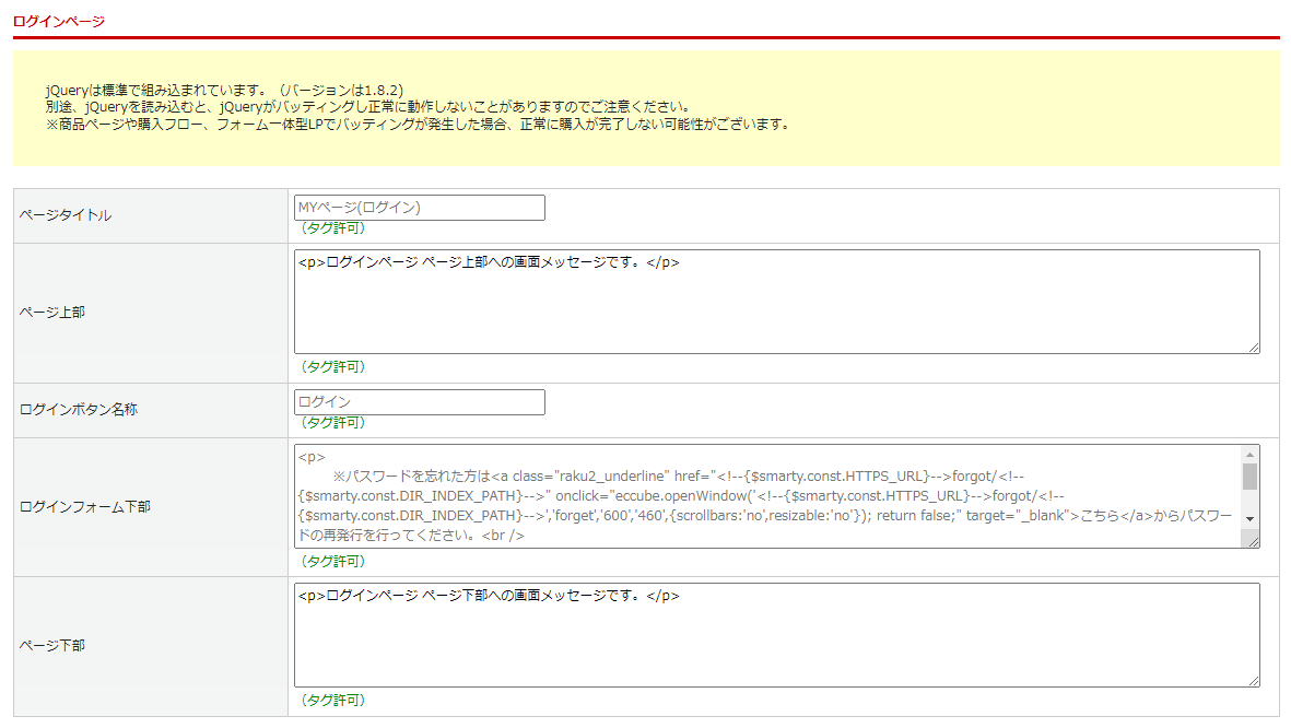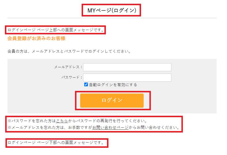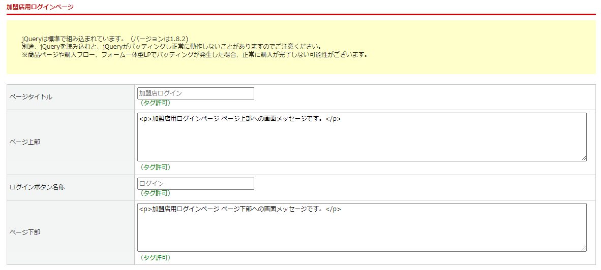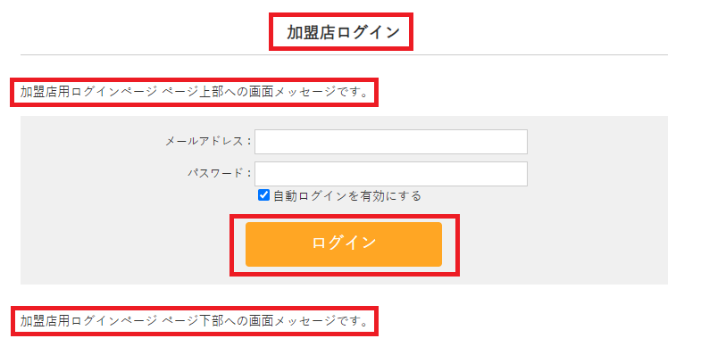 加盟店用ログインページにコメントを記載したい場合に設定します。