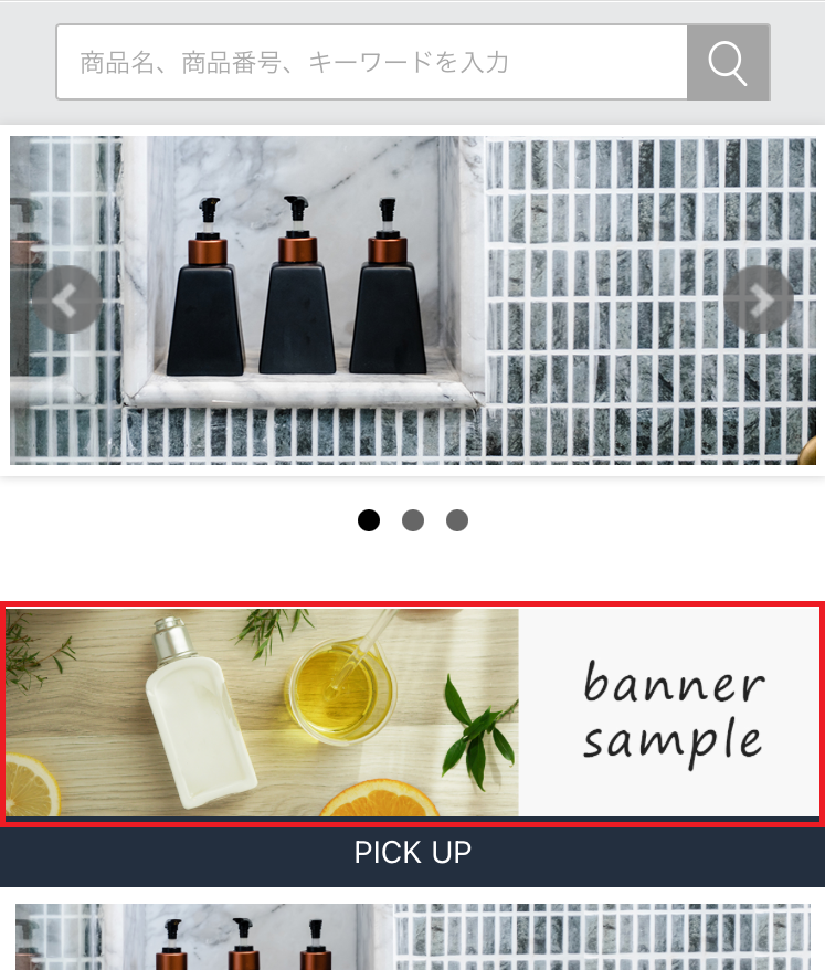 「遷移先URL」が設定されたバナー画像が表示されます。 {リンク開始}{バナー画像}{リンク終了} ※バナー画像以外の画像を利用する場合は、