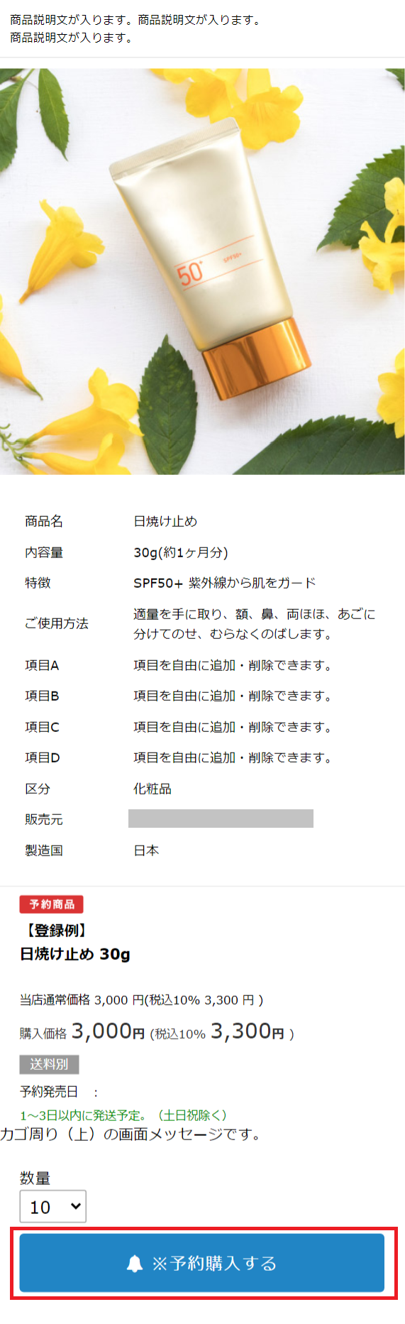 注文ボタン/予約ボタンの設定の詳細は出品商品登録についてをご確認ください。
