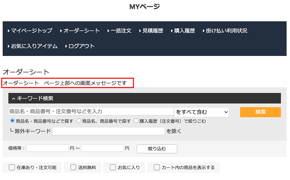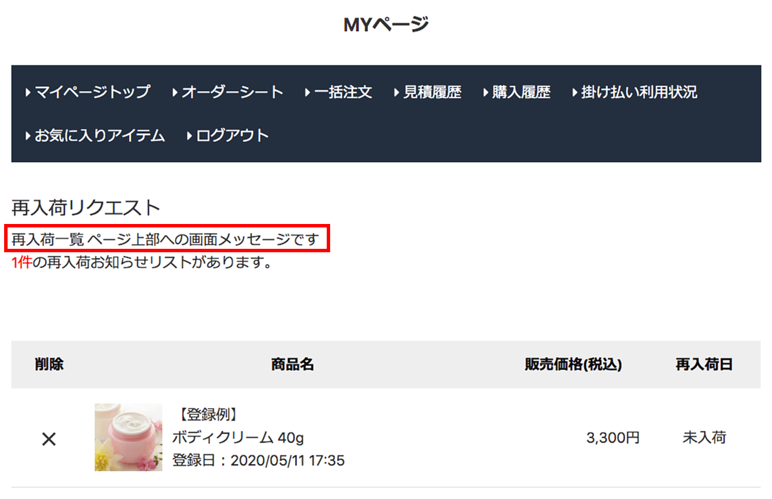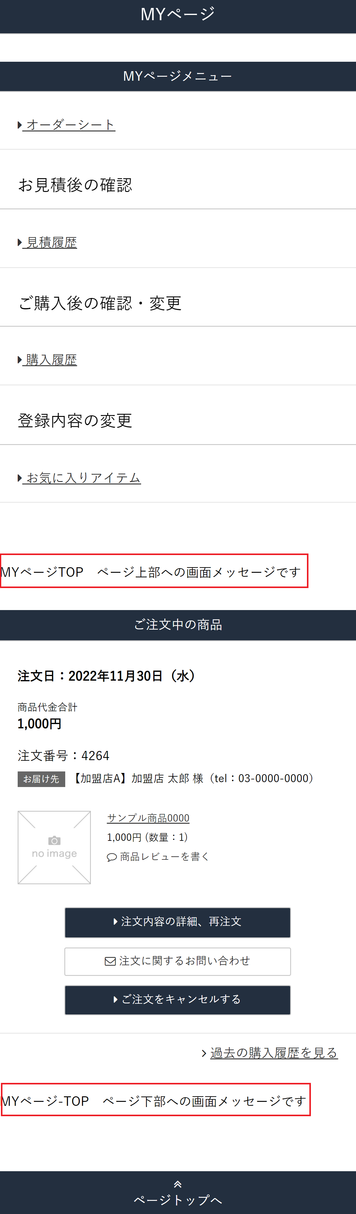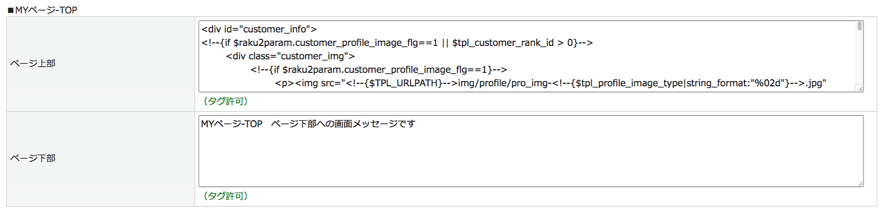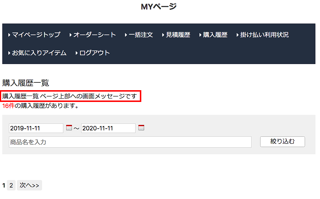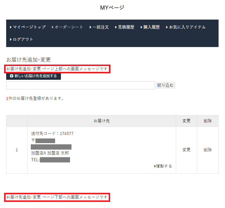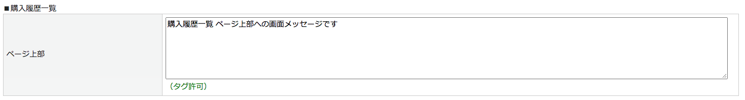 MYページへの画面メッセージ設定です。
