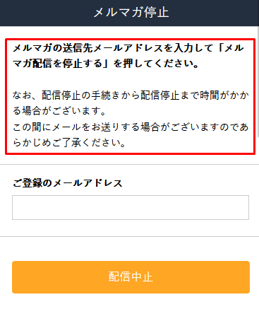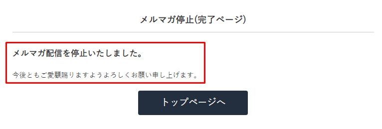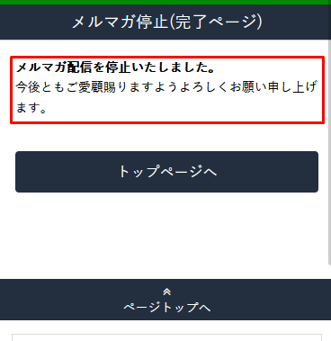 メルマガの配信停止URLをクリックした際に表示される画面です。