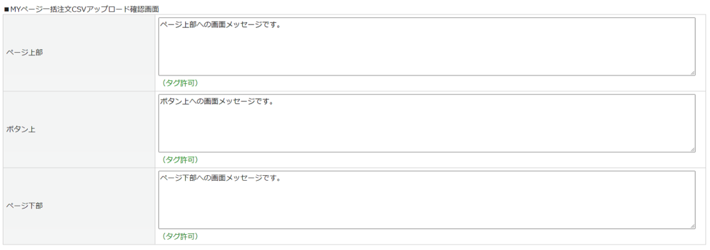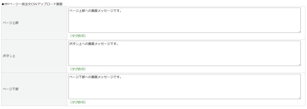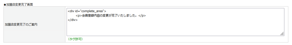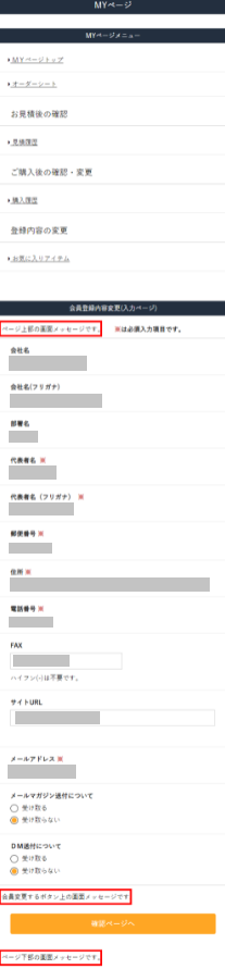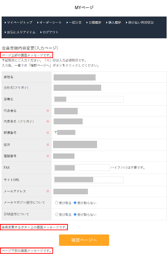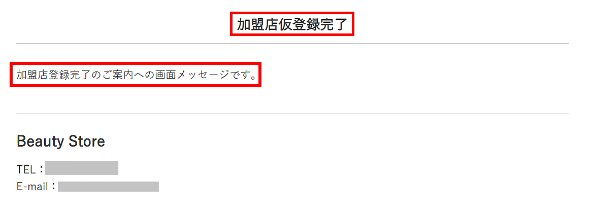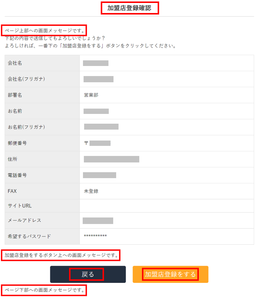加盟店登録画面やMYページ画面内への画面メッセージ設定です。