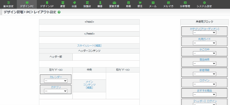 表示管理:デザイン(PC/SP) > 高度な設定 > レイアウト設定