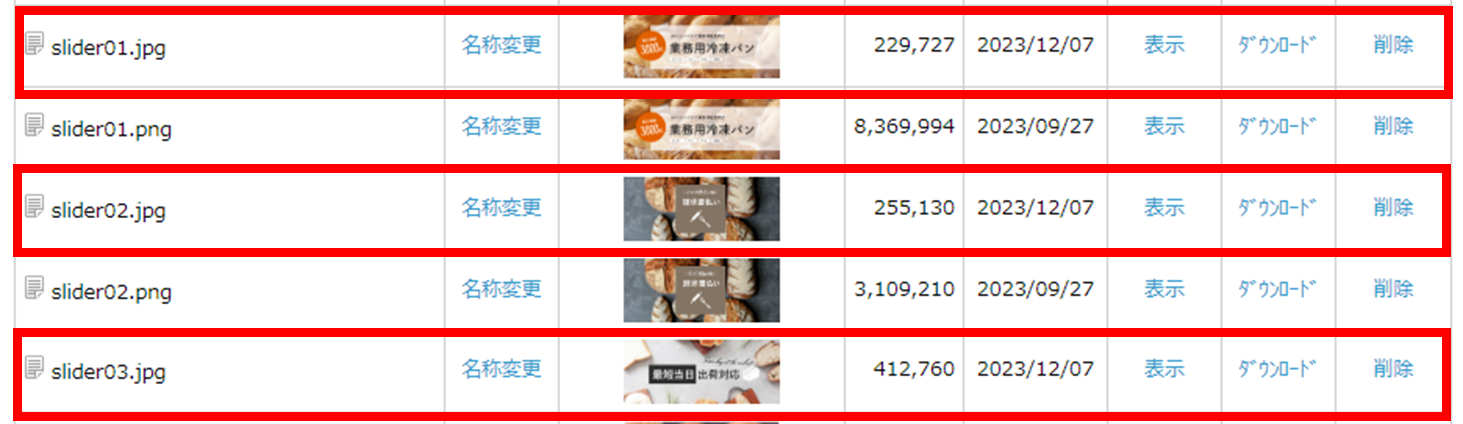 コードに記載されている「slider01.jpg/slider02.jpg/slider03.jpg」が対象となります。