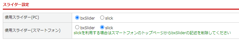 前項目「⑧スライダー(デザイン)」でどのデザインパターンを選択したかによって、