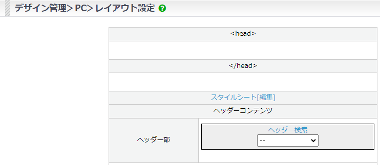 HTML:デザイン(PC) > ヘッダー・フッター・レフトナビ設定 > 「ヘッダーコンテンツ」編集画面