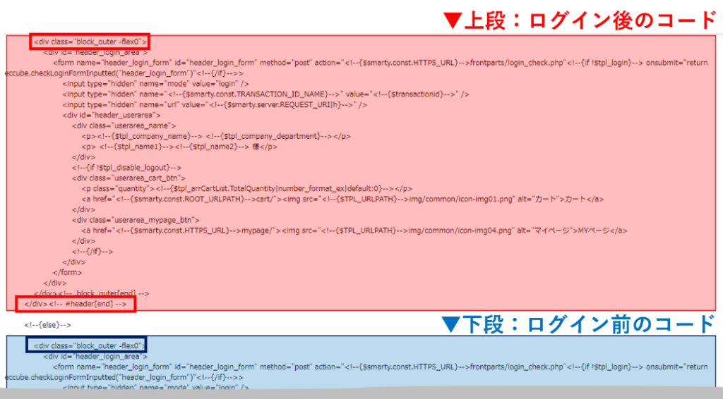 ログイン前後でHTMLが分かれているため、上記のブロックは2箇所存在します。